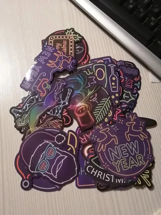 Наклейки неоновые рождественские 50 шт., милые водонепроницаемые Му...