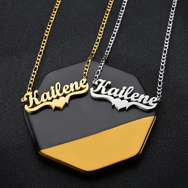 Ожерелье с именем на заказ, подвеска из нержавеющей стали с сердцем...