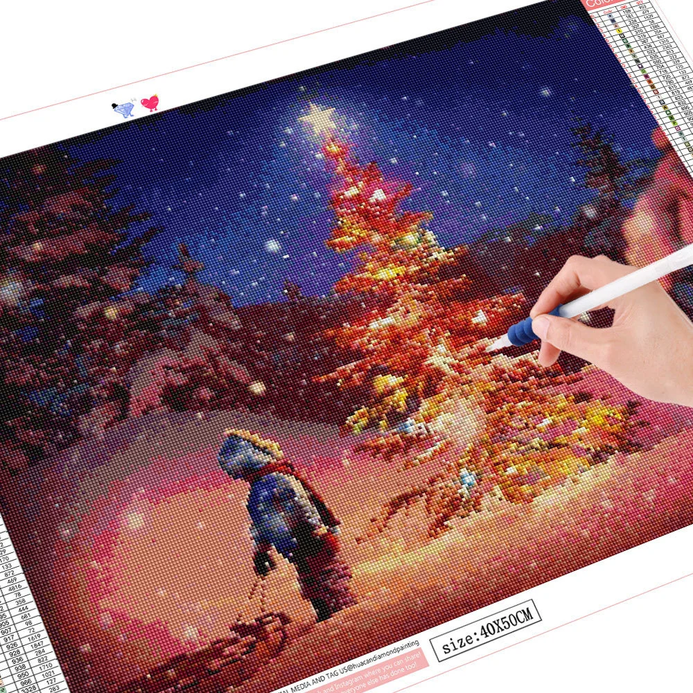 HUACAN 5D DIY бриллиантовый рисунок Рождество Бриллиантовая вышивка с изображением дерева Пейзаж Зима Алмазная мозаика для детей вышивка крестиком ручной работы подарок