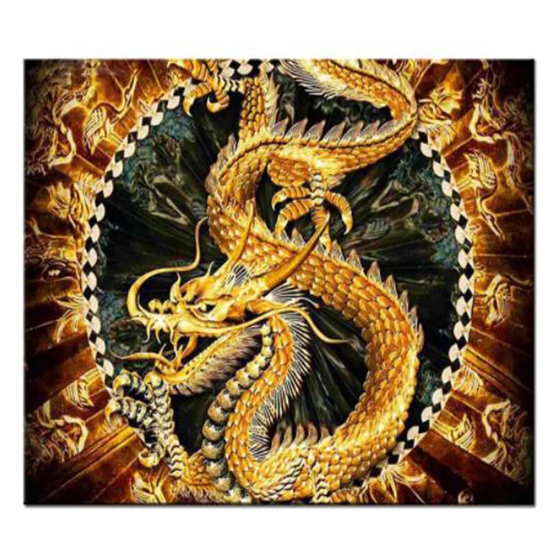Алмазная 5D картина сделай сам, вышивка, животное, мозаика, вышивка крестиком, украшение на стену, золотой дракон