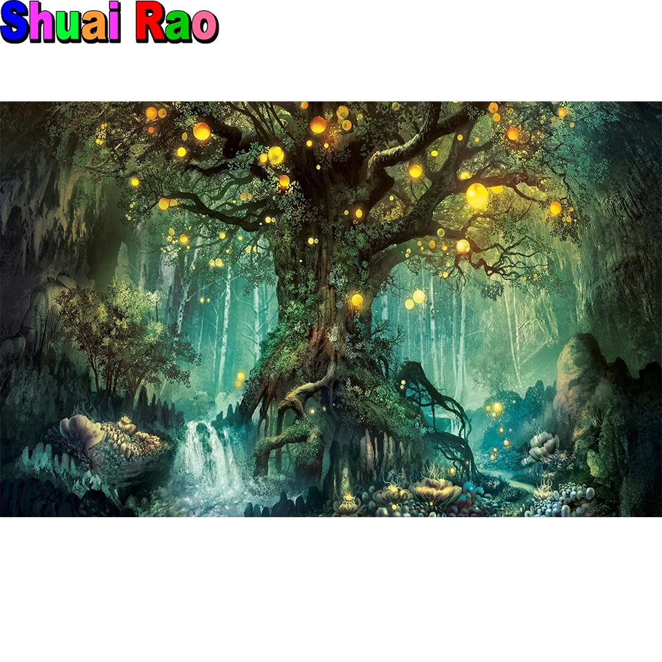 Алмазная картина 5d "Сказочный лес", "сделай сам", мозаика, искусство, волшебная сказка, Декор для дома Бриллиантовая вышивка с изображением дерева