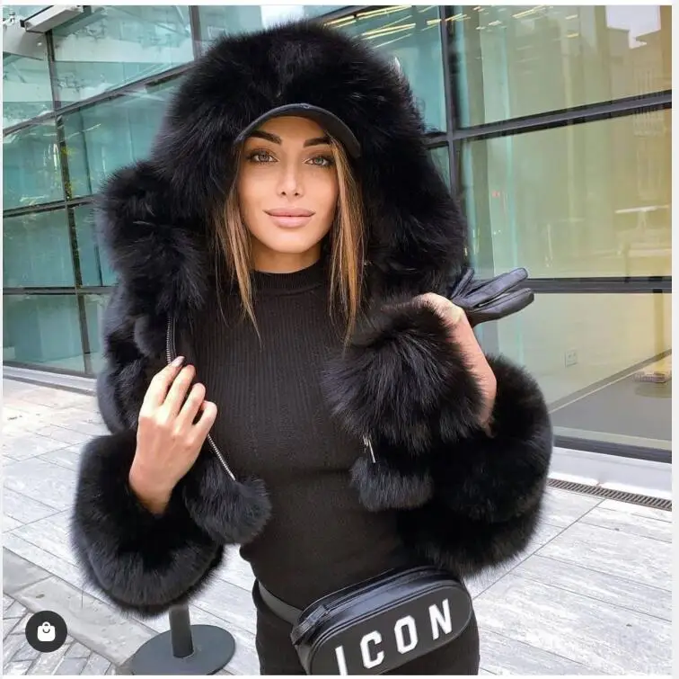 Женская меховая куртка с капюшоном, Женская куртка с капюшоном из шуба из натурального Лисьего меха натурального меха