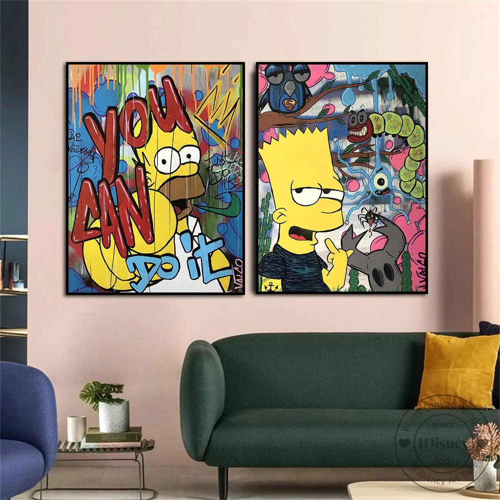 Постер с изображением Симпсонов, мультфильмов Диснея, Барта, спрея,...