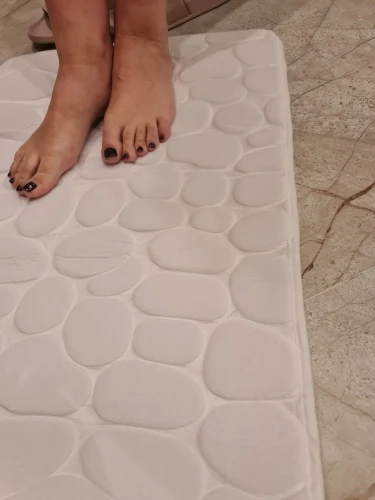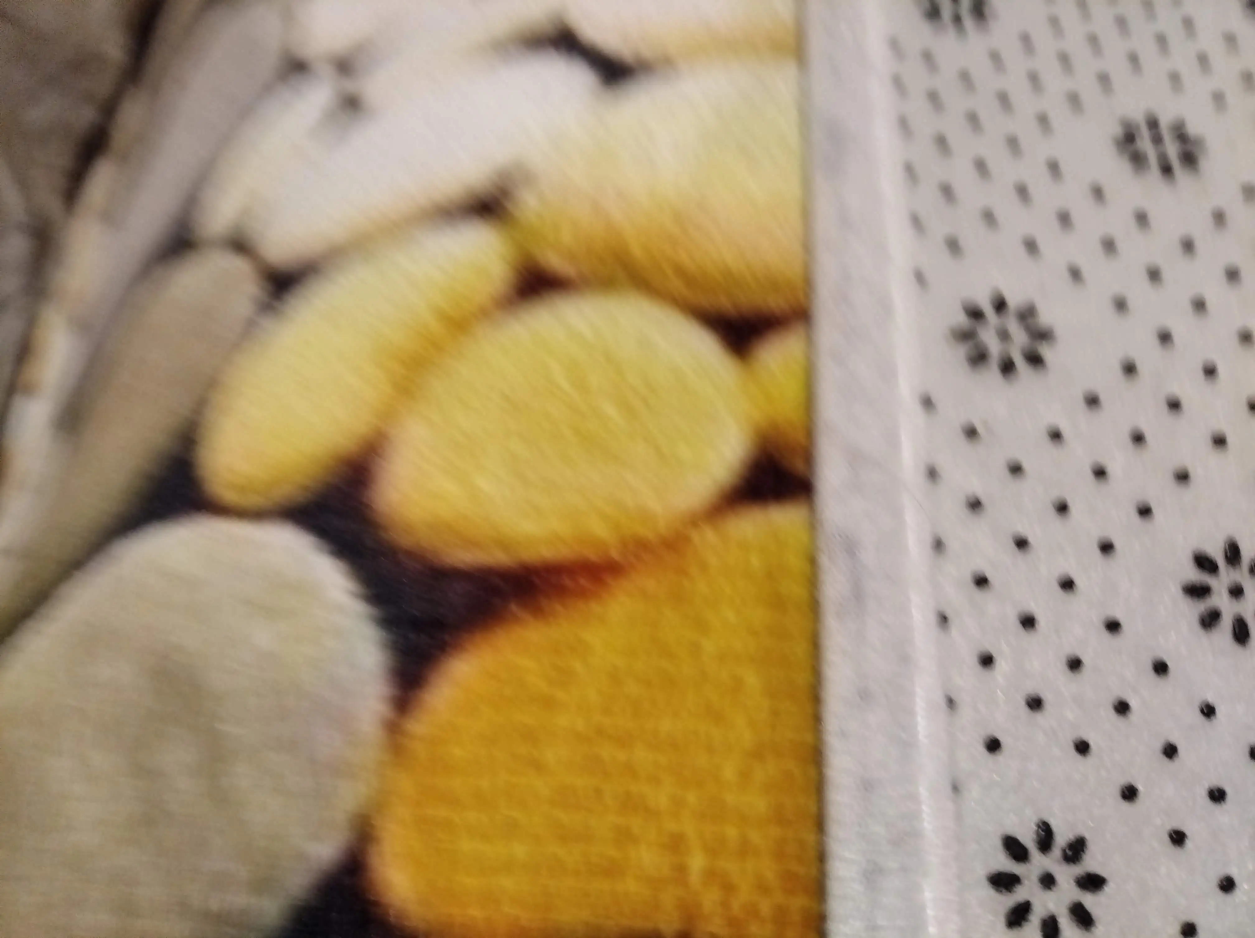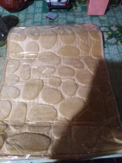 Коврик супер. Очень мягкий и приятный. С обратной стороны прорезиненный рисунок, чтобы по кафелю не скользил. Это то, что я искала. Благодарю.