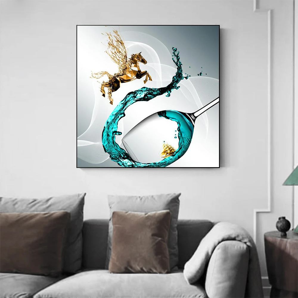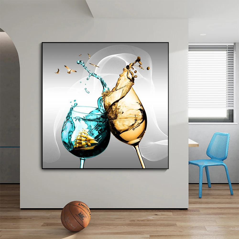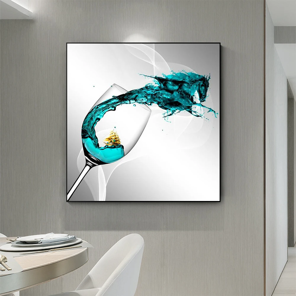 Синий винный бокал, холст с абстрактной печатью, Скандинавский современный обеденный кухонный постер, декоративный плакат, настенное искусство, картина без рамки