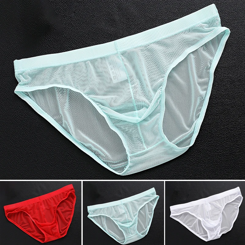 Трусы мужские из тюля и сетчатой ткани, Прозрачное нижнее белье, дышащие эластичные трусы, Эротическое нижнее белье