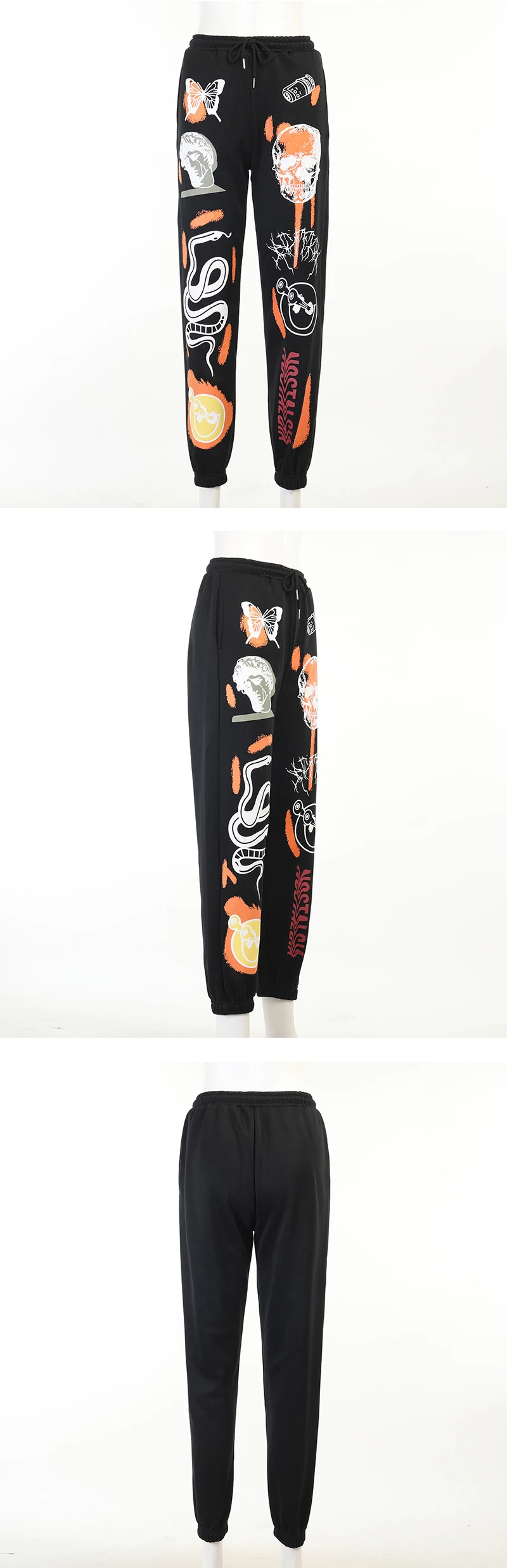 Осенние женские брюки в стиле Харадзюку с принтом бабочки и черепа,...