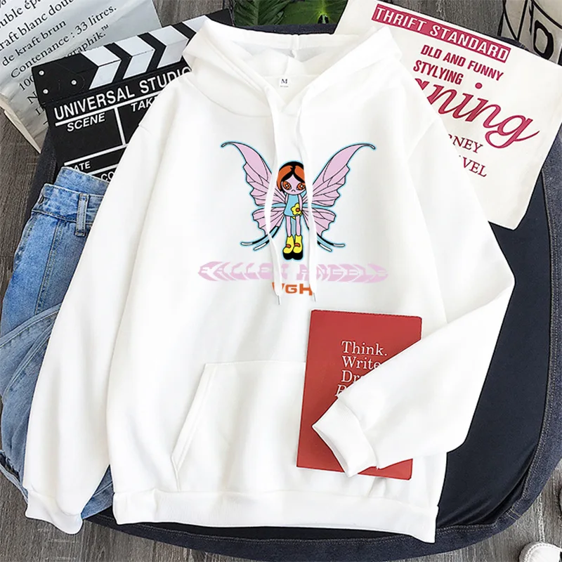 Kawaii Женская толстовка y2k с принтом бабочки уличная толстовка с капюшоном Женская корейская мода Harajuku оверсайз пуловер свитшотыОбратите внимание:
