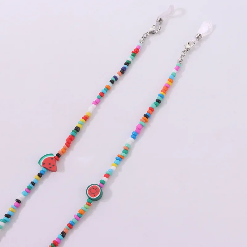 Цепочка для очков, с разноцветными фруктовыми бусинами, винтажная, женская, нескользящая, на шею