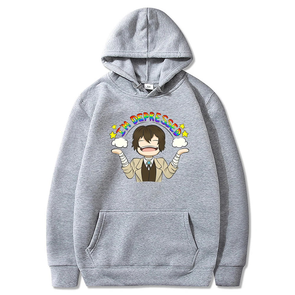 Забавные Аниме толстовки Bungou бродячие собаки Осаму дадзай мужские забавные Kawaii манга I AM подавленные модные повседневные толстовки с буквенным принтом