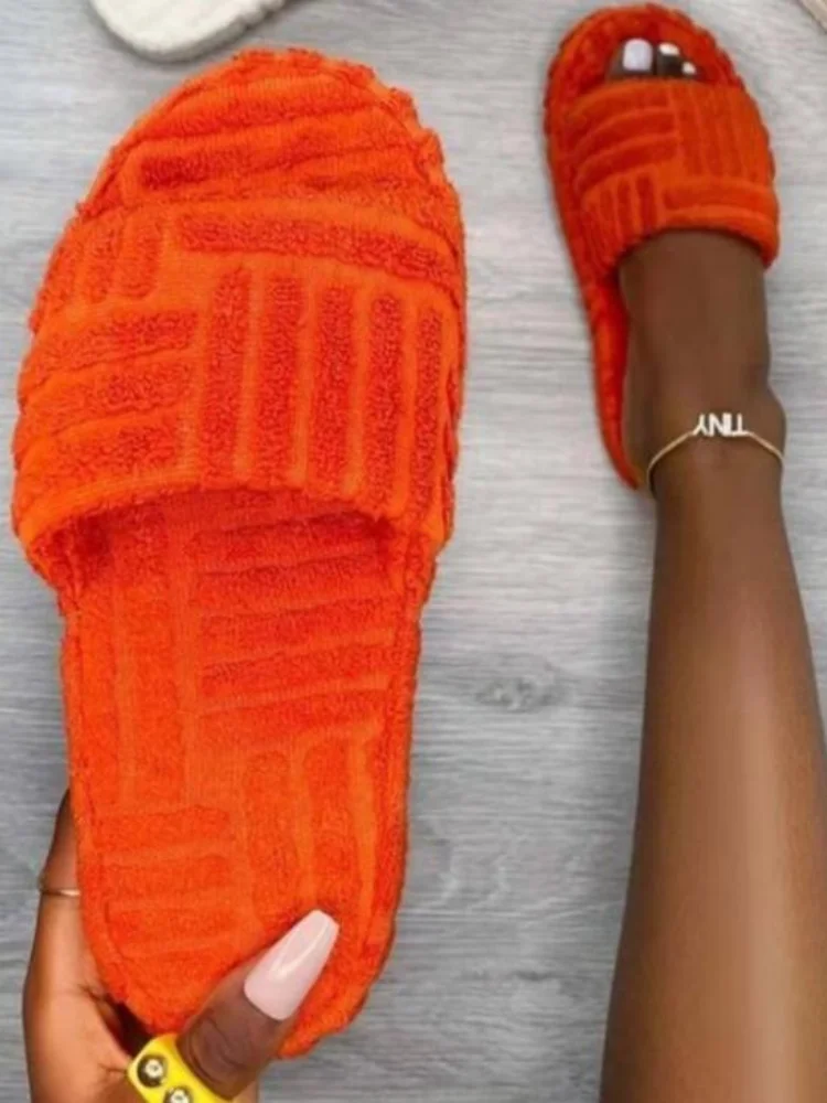 Зимние женские тапочки с открытым носком, хлопковая домашняя обувь ...