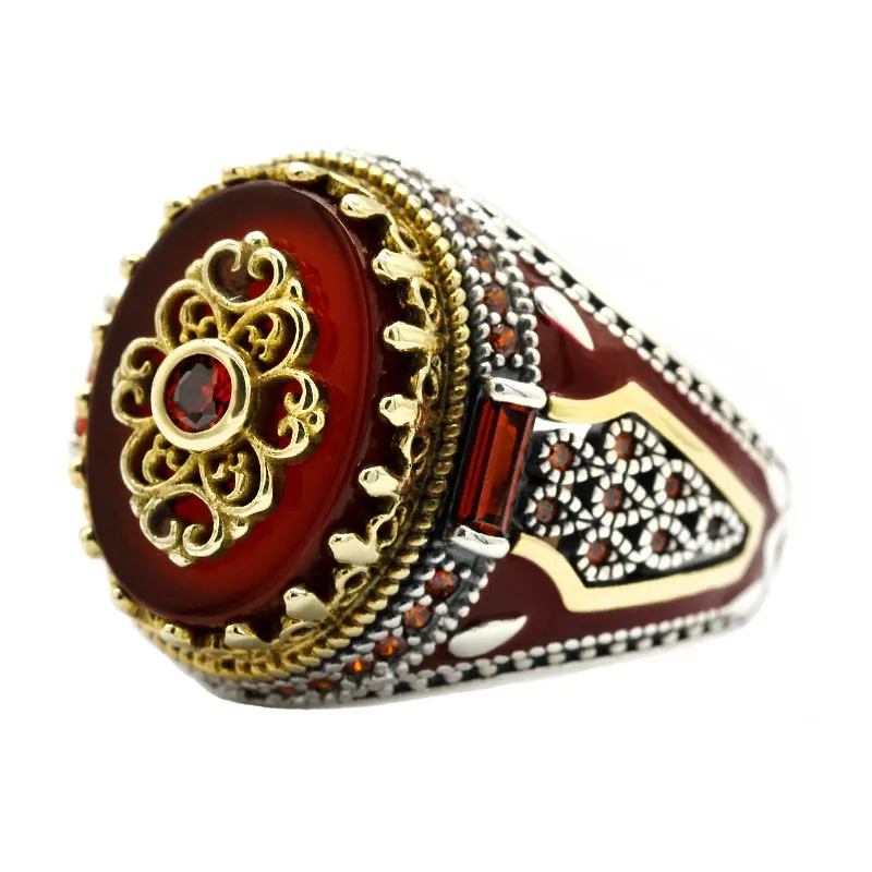 Роскошное турецкое кольцо ручной работы с короной из натурального к...
