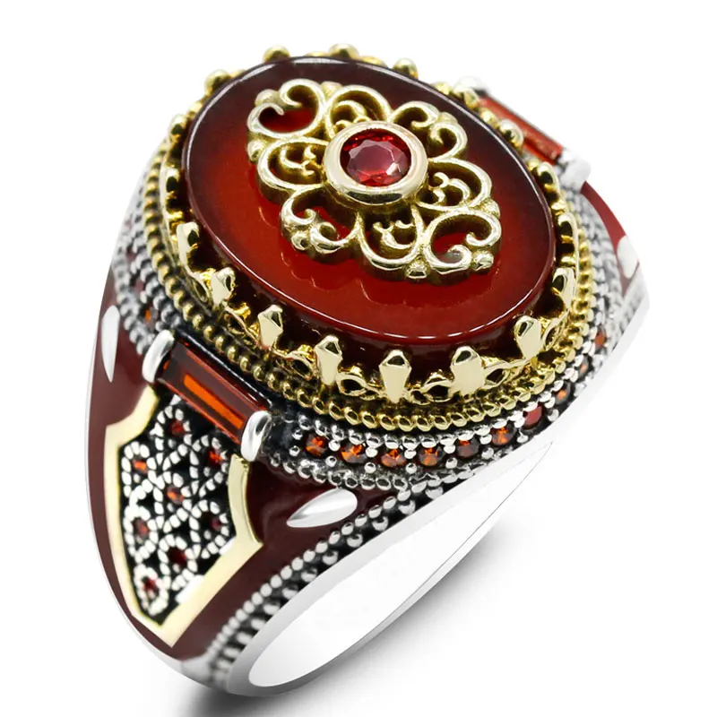 Мужские кольца ручной работы с турецкой короной в стиле ретро сереб...