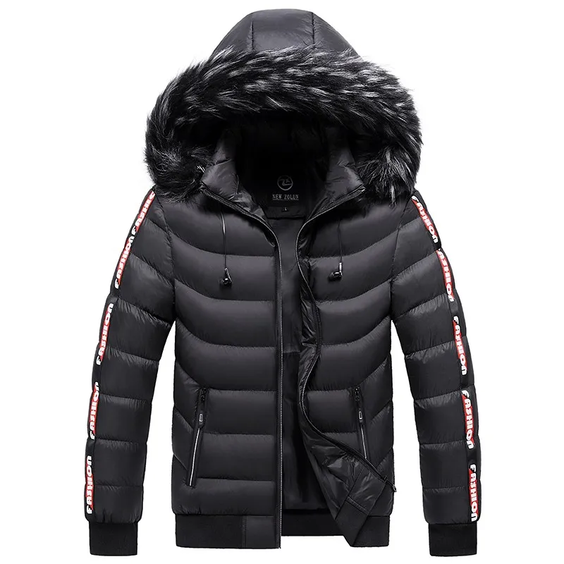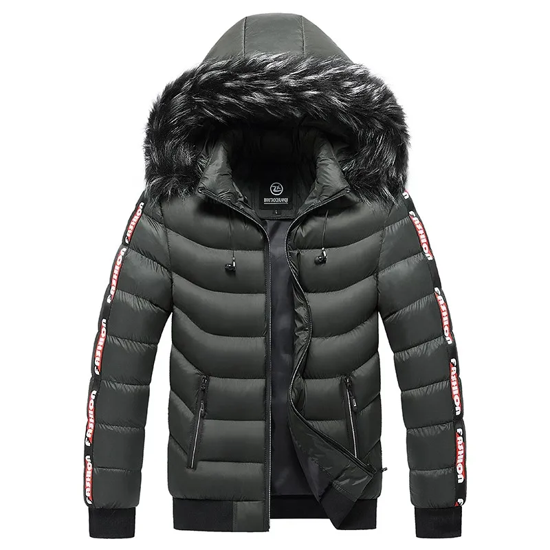 Мужская теплая куртка с меховым капюшоном, парка на хлопковой подкл...