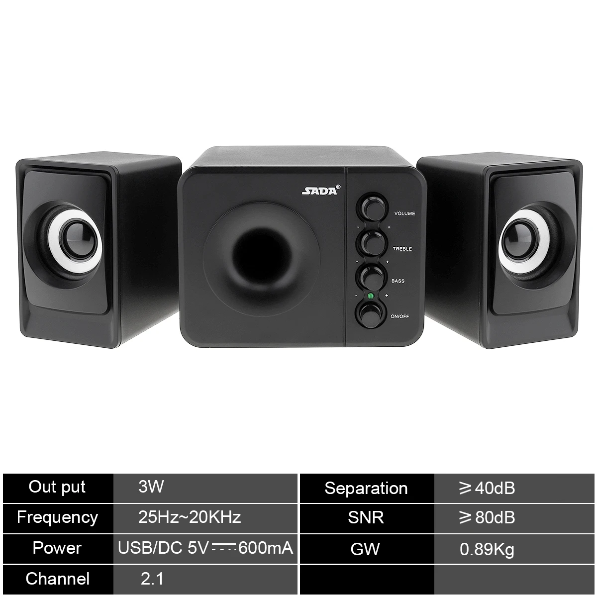 SADA D205 USB комбинированный сабвуфер компьютерная Колонка 3,5 мм аудиоразъем и USB разъем питания для настольного ПК ноутбука MP3 сотового телефона MP4