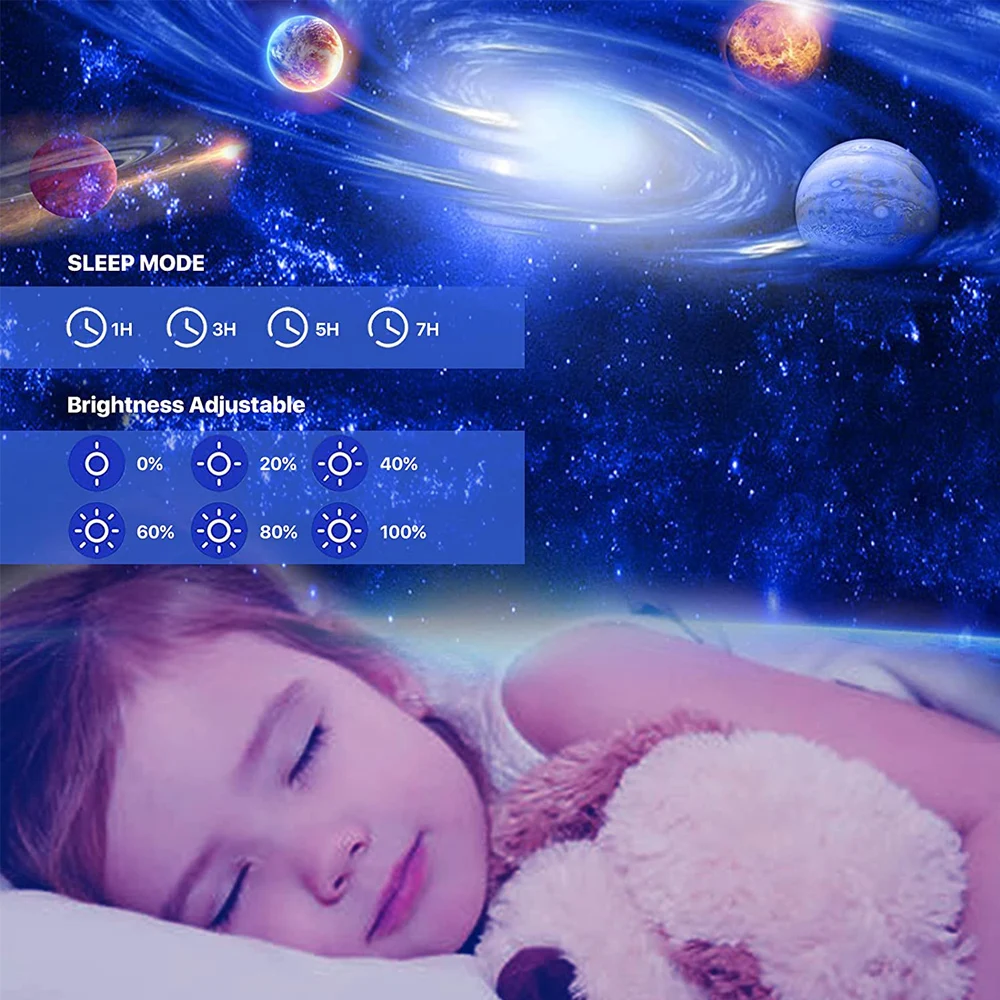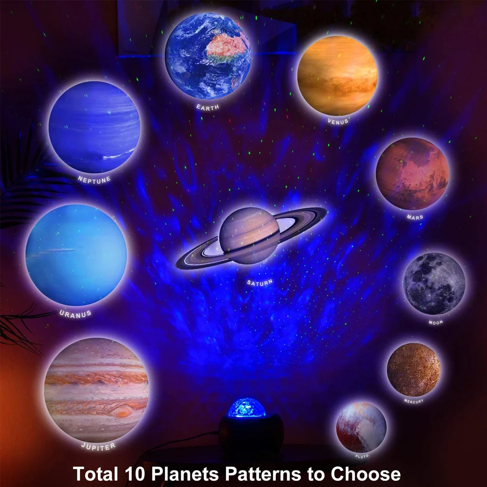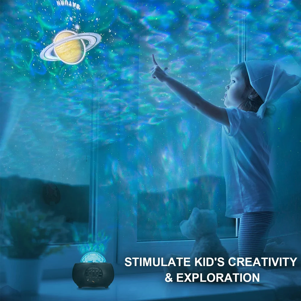 [Усовершенствованный планетарный проектор]: Принесите 10 планет в свой дом, потрясающий проектор galaxy! 2021 специальный проектор звездного неба позволит вашим детям понять планеты в космосе и культивировать их интерес к астрономии. Наш Звездный ночной Светильник-проектор может не только превратить вашу комнату в обширную вселенную, но и издавать светильник twi star ocean wave, чтобы проецировать звездное небо.