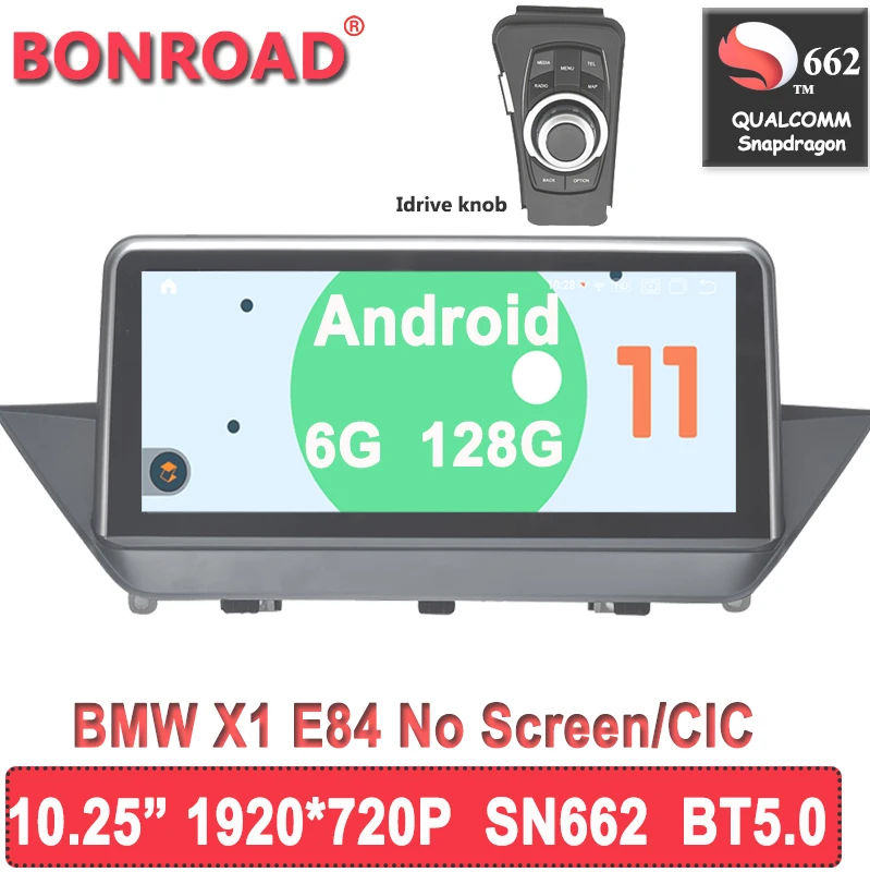 BMW E84 10,25 дюймов автомобильное радио для X1 CIC и без экрана (2009-2015)Новейший android 11Процессор: SN662(SM6115)8 ядро Kryo 26064-битный процессорПоддержка AHD камеры1920*720P IPS