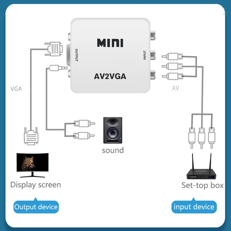 Преобразователь BSLIUFANG Mini RCA в VGA AV2VGA VGA2AV с 3,5 мм аудио VGA видео преобразователь для ПК к телевизору компьютера к телевизору