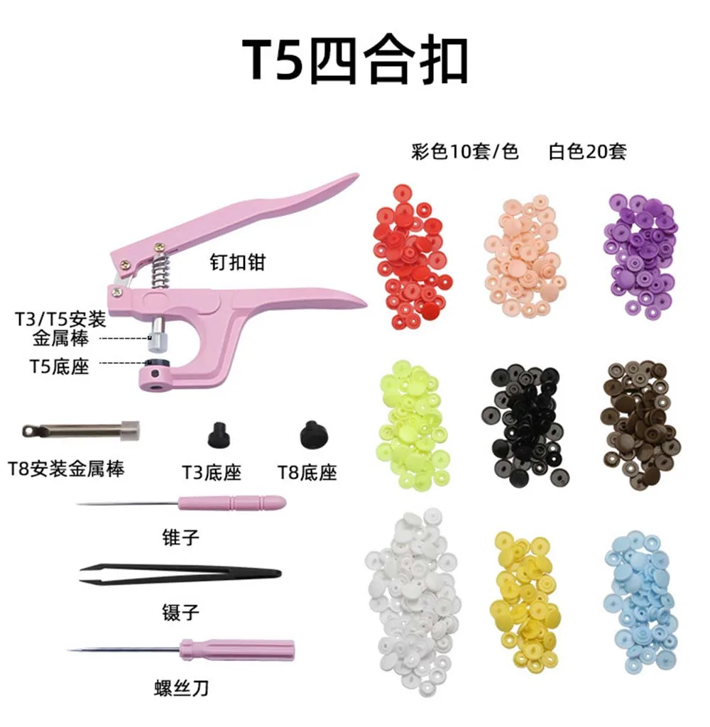 Новинка 100, качественный набор T5, пластиковые пуговицы с защелками, Набор плоскогубцев для шитья одежды, нагрудники, дождевик, изысканная портативная упаковка