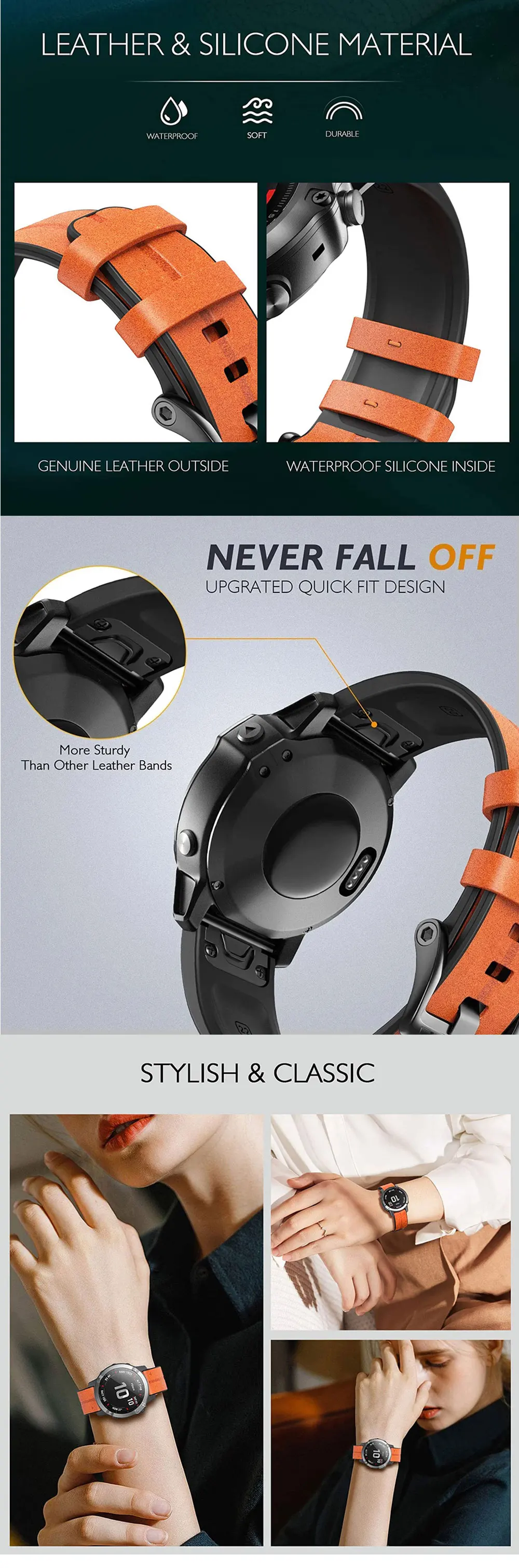 Ремешок из натуральной кожи для наручных часов Garmin Fenix 6 6X 5X...