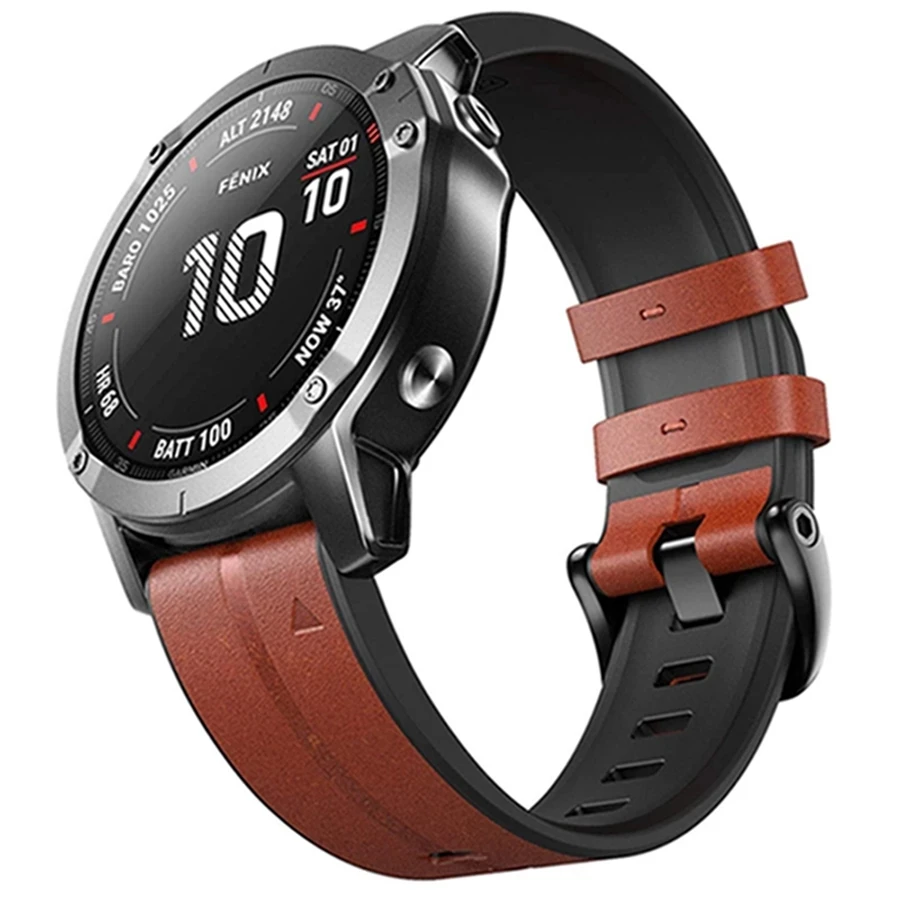 Ремешок спортивный Fenix 6 из натуральной кожи с силиконовым ремешк...