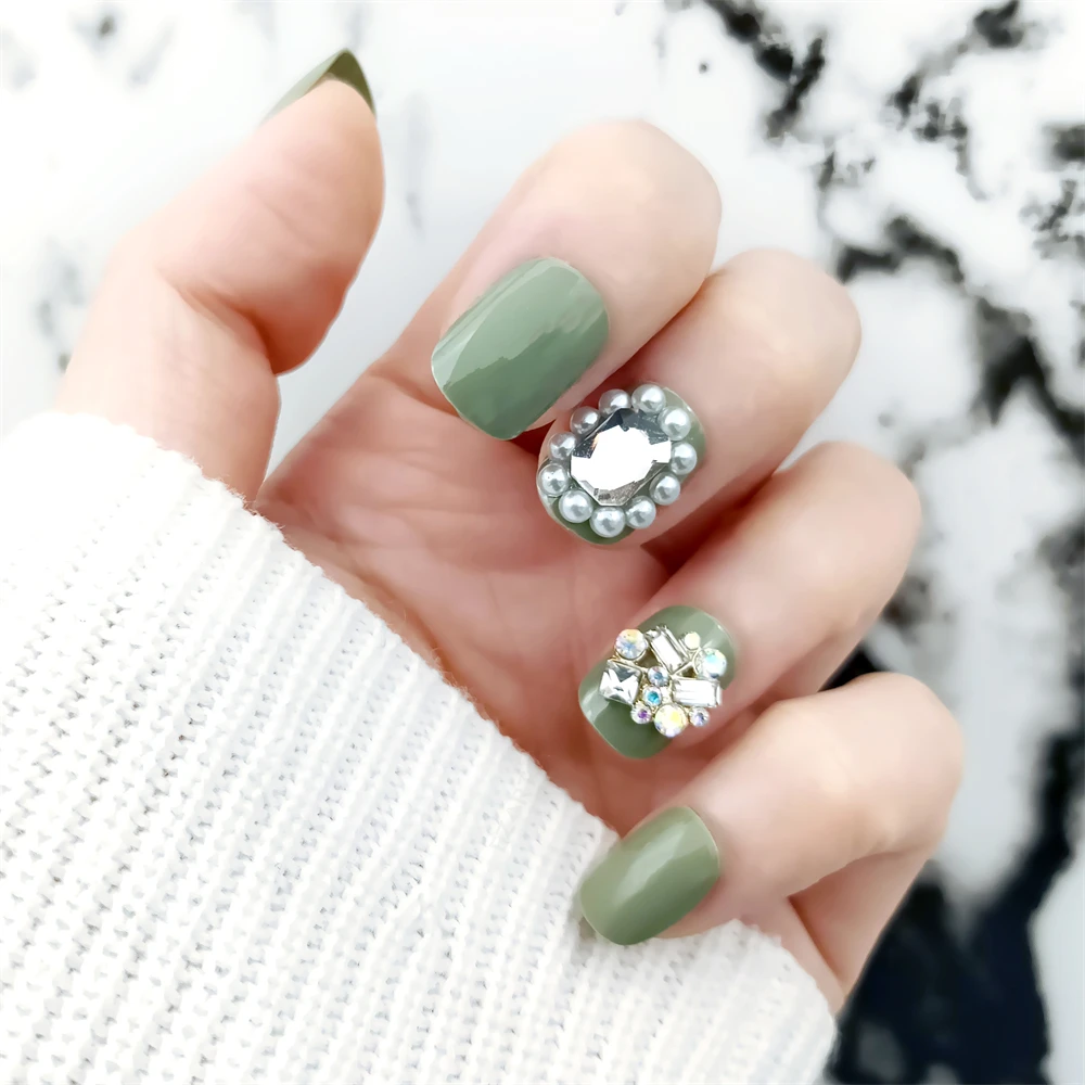 Искусственные ногти зеленого цвета с разным дизайном для ежедневного использования и особых случаев искусственные ногти Типсы безклеевые Длинные Короткие 24 шт.