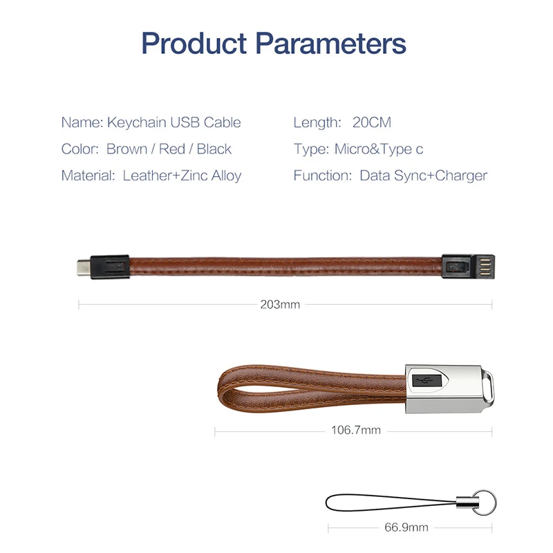 Feature 4Keychain USB Cable Mini Leather 3A Fast Charging Data Cord USB C Cable