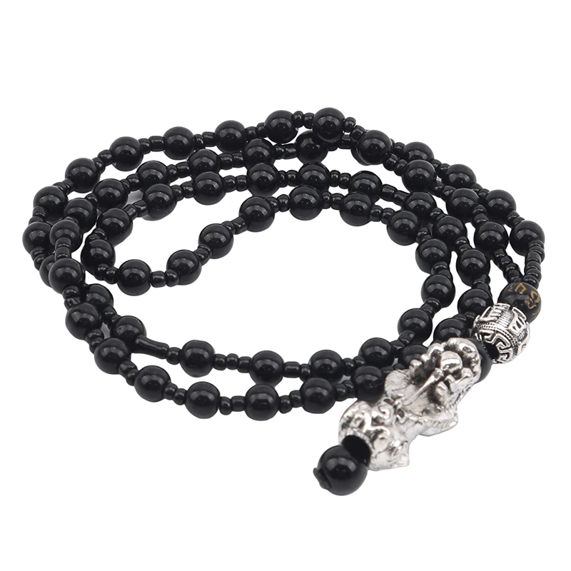 Pixiu ожерелье с подвеской символ богатства и удачи ожерелье с подвеской китайский фэн-шуй вера обсидиан каменные бусины ожерелье s