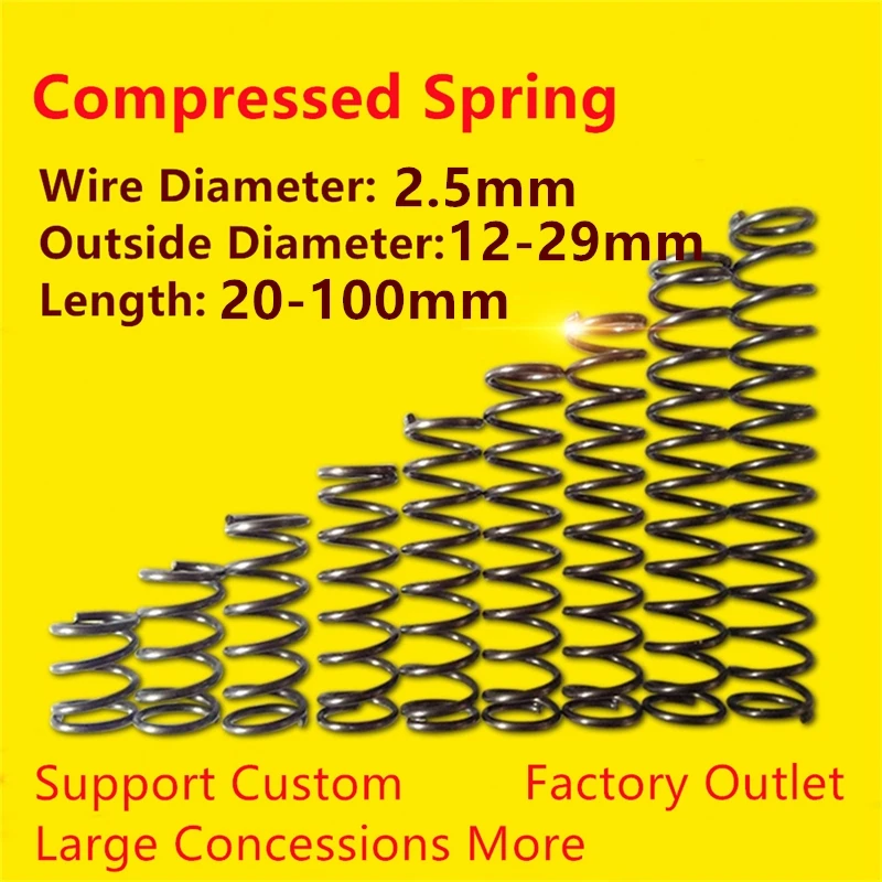 5 шт. проволока диаметром 2,5 мм 65Mn Cylidrical катушка сжатие микро маленькая пружина возврата давления сжатой пружины длина стали 20-100 мм