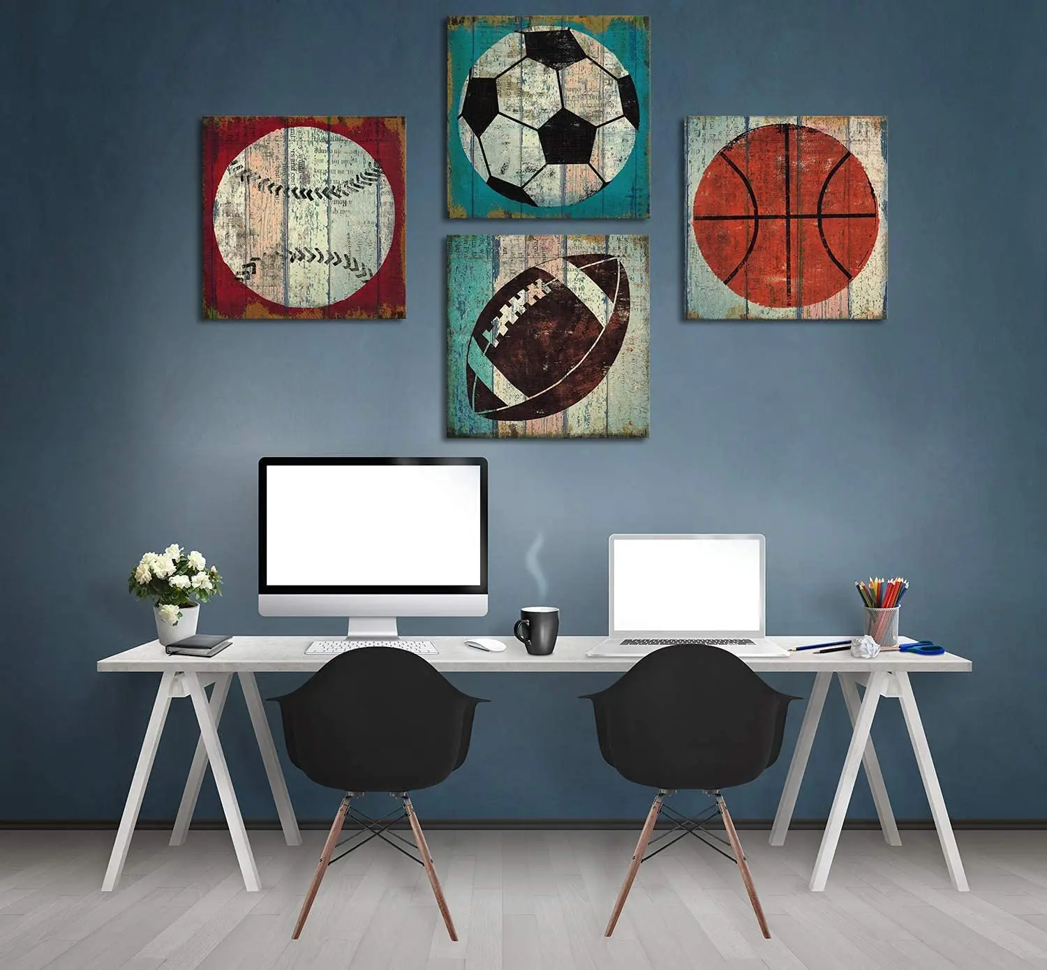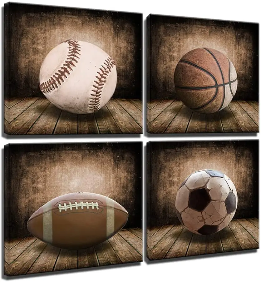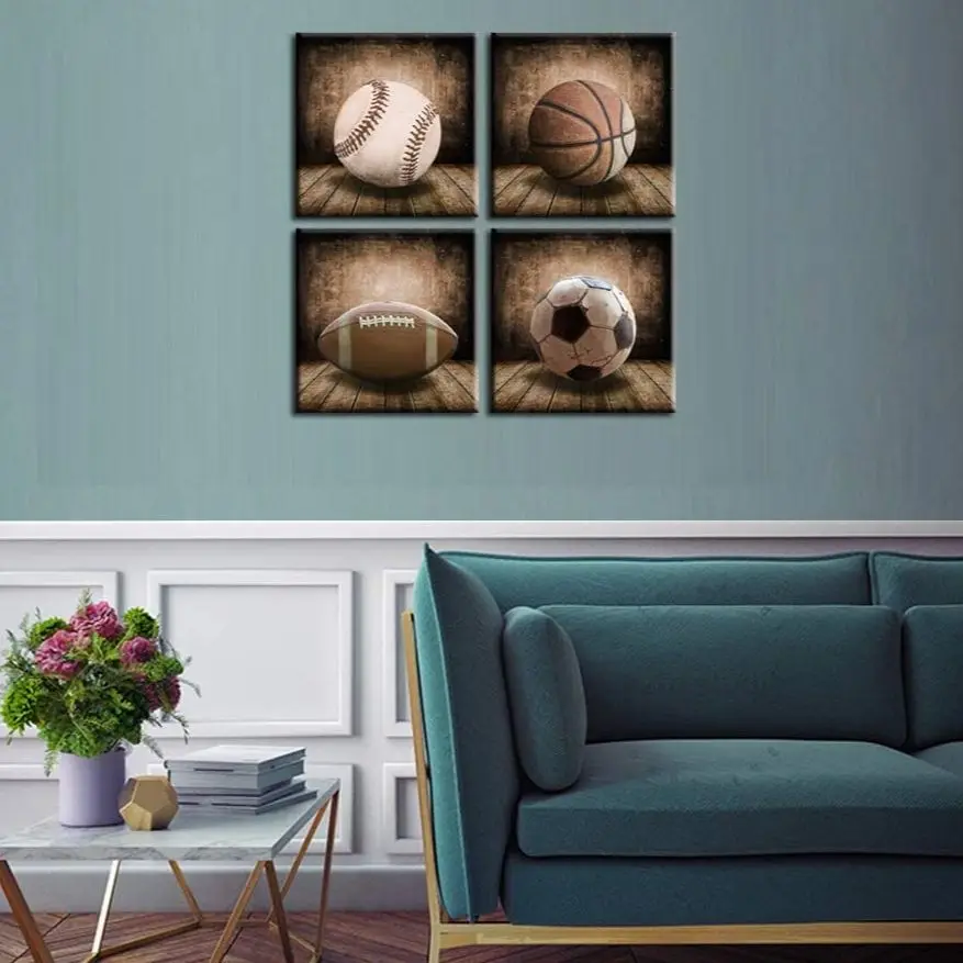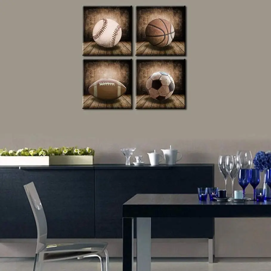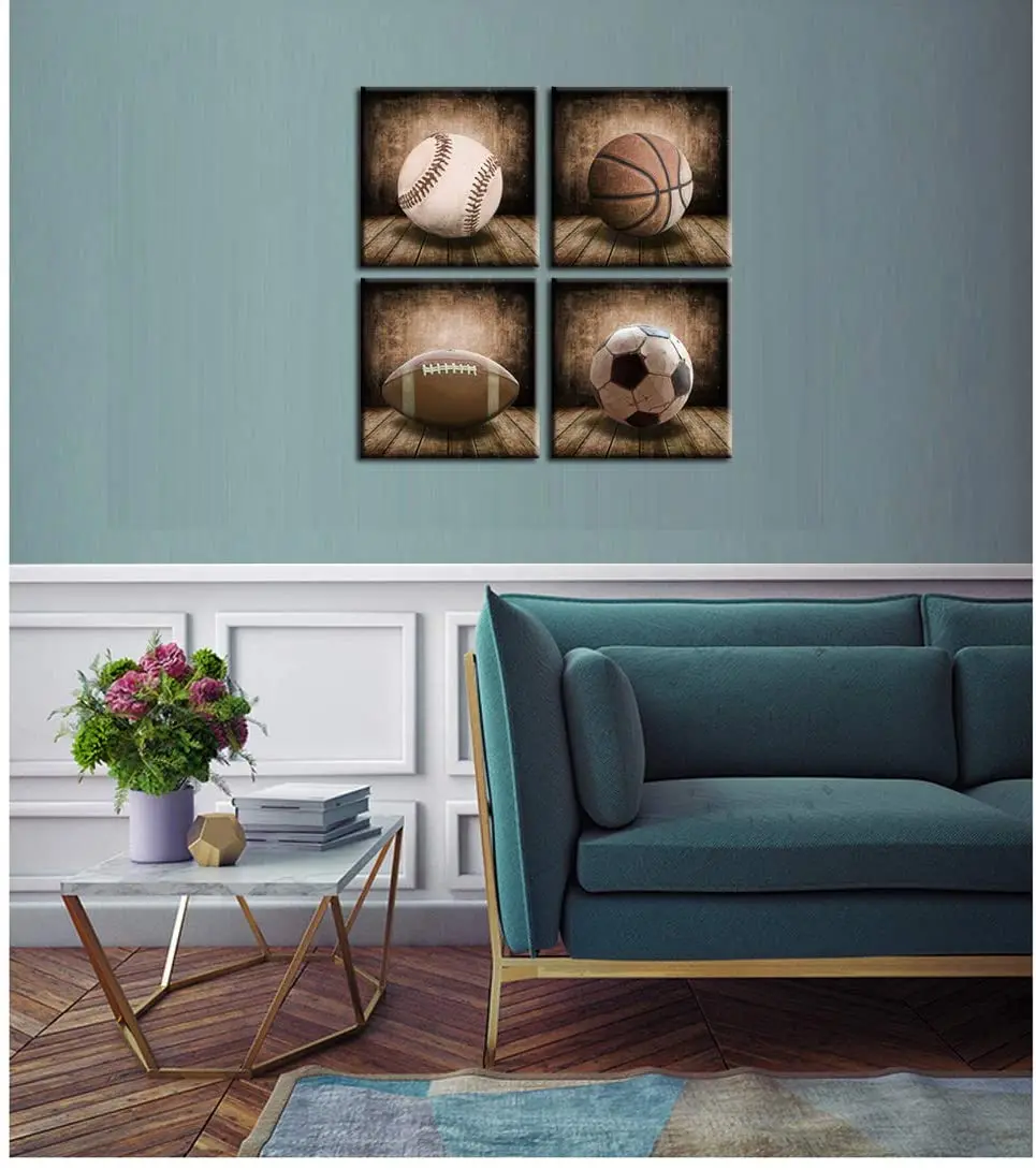 4 шт. деревенский Футбол Баскетбол регби Бейсбол плакаты картины на холсте настенное искусство домашний декор картины для детей подарок украшения
