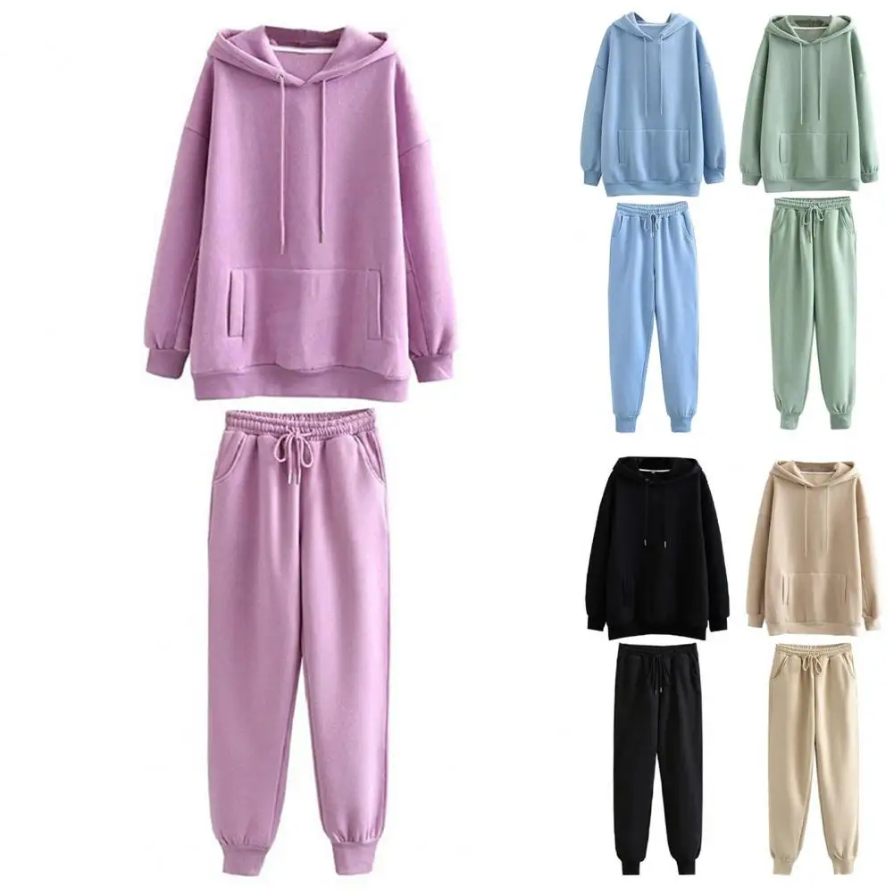 Однотонный женский комплект из двух предметов, свитшот с капюшоном ...