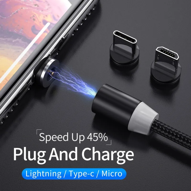 Магнитный кабель для быстрой зарядки мобильный телефон, 3 в 1, Micro USB, 1 м, для Iphone, Samsung, Huawei