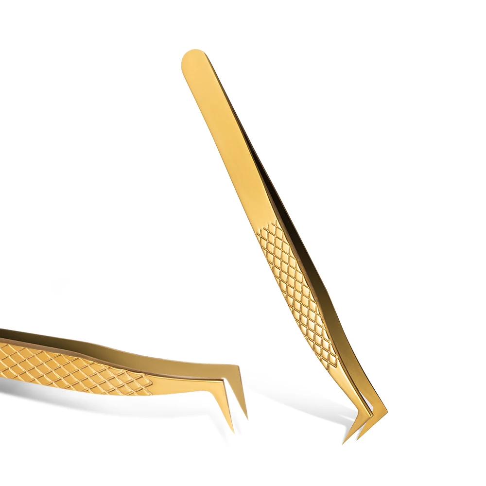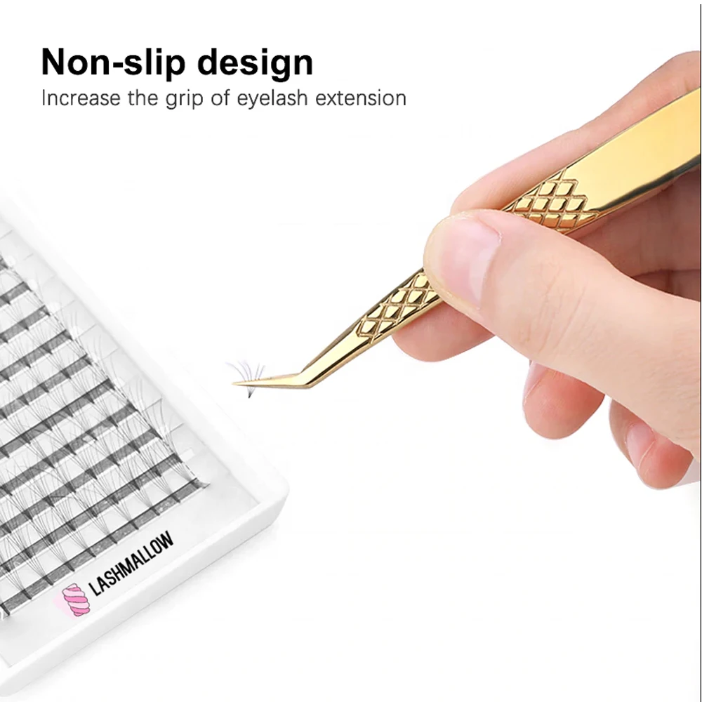 Профессиональный пинцет для наращивания ресниц, с золотистым объемом, легкое разглаживание, классический противоскользящий дизайн, высокоточный пинцет