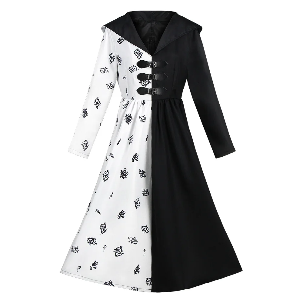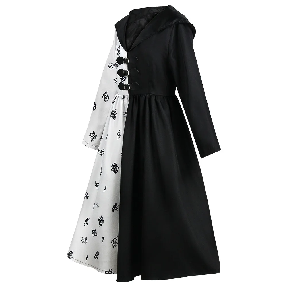 Женский костюм Cruella, костюмы для косплея, детское черно-белое пл...