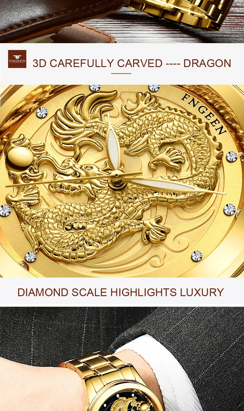 FNGEEN часы мужские 2020 Топ Бренд роскошные золотые часы Дракон ст...