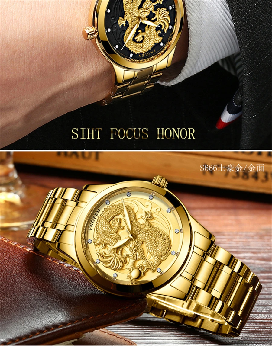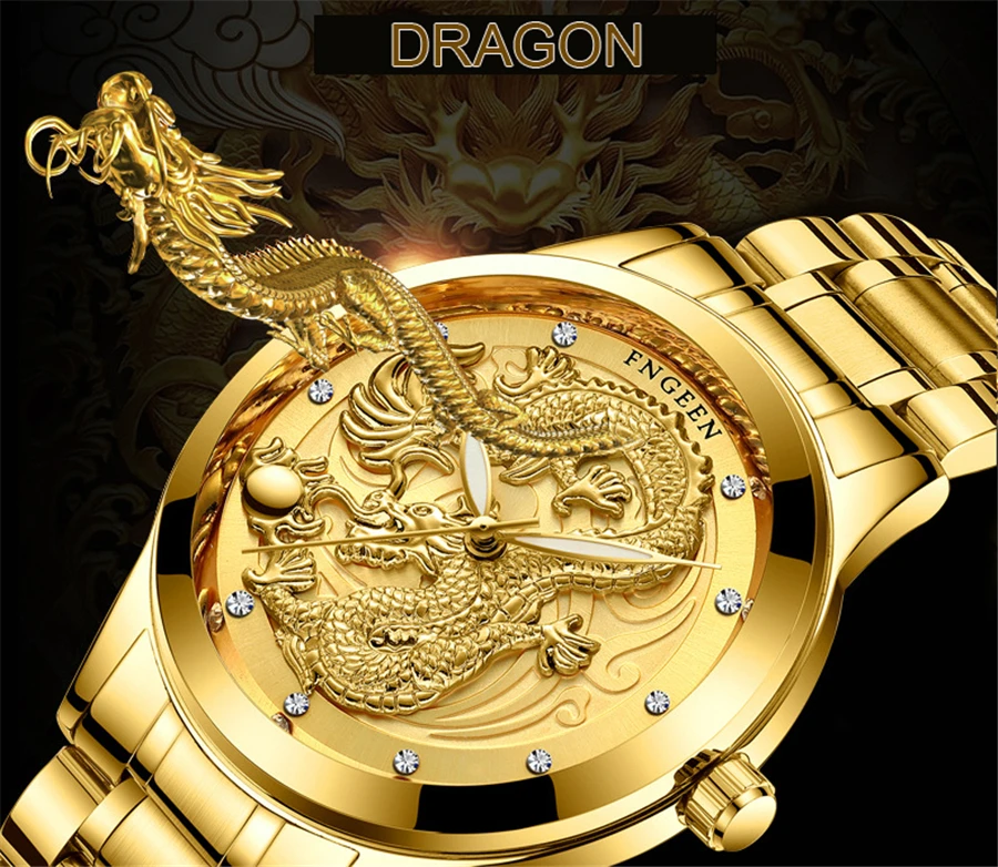 Gold Dragon Wist Watches for Menrelogio masculino erkek kol saati relojes para hombre de luxo horloges