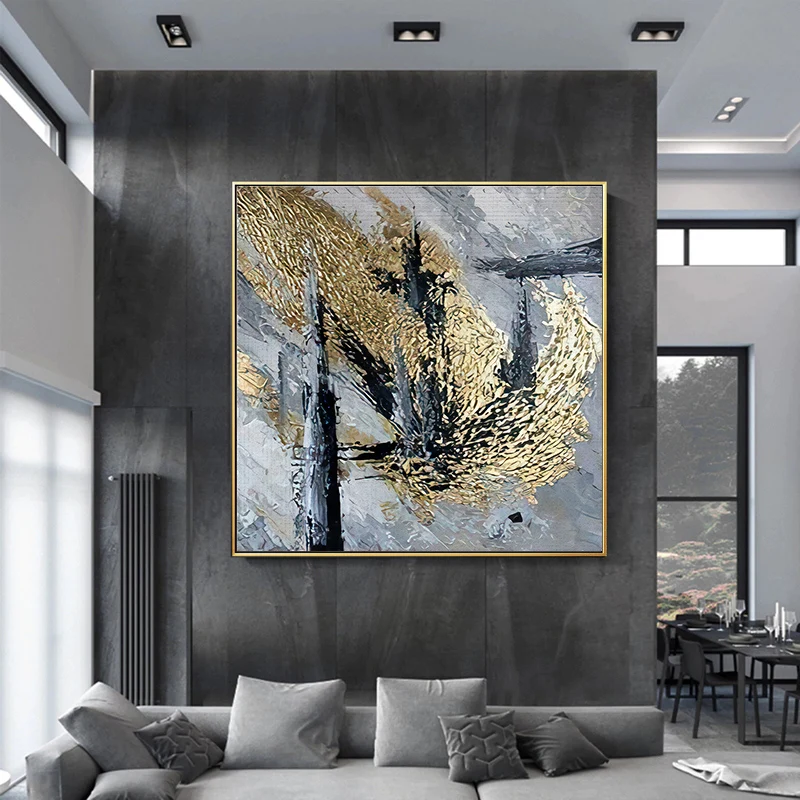 Картина маслом на холсте, абстрактная, с пером, для гостиной, коридора