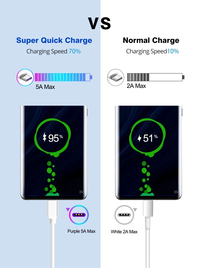 Супербыстрое зарядное устройство 5A, кабель USB C для Huawei P30, P...