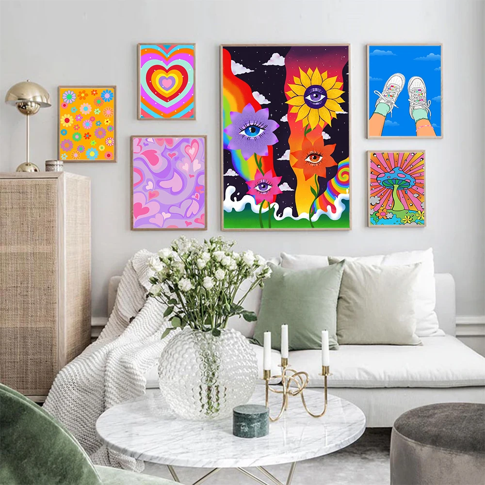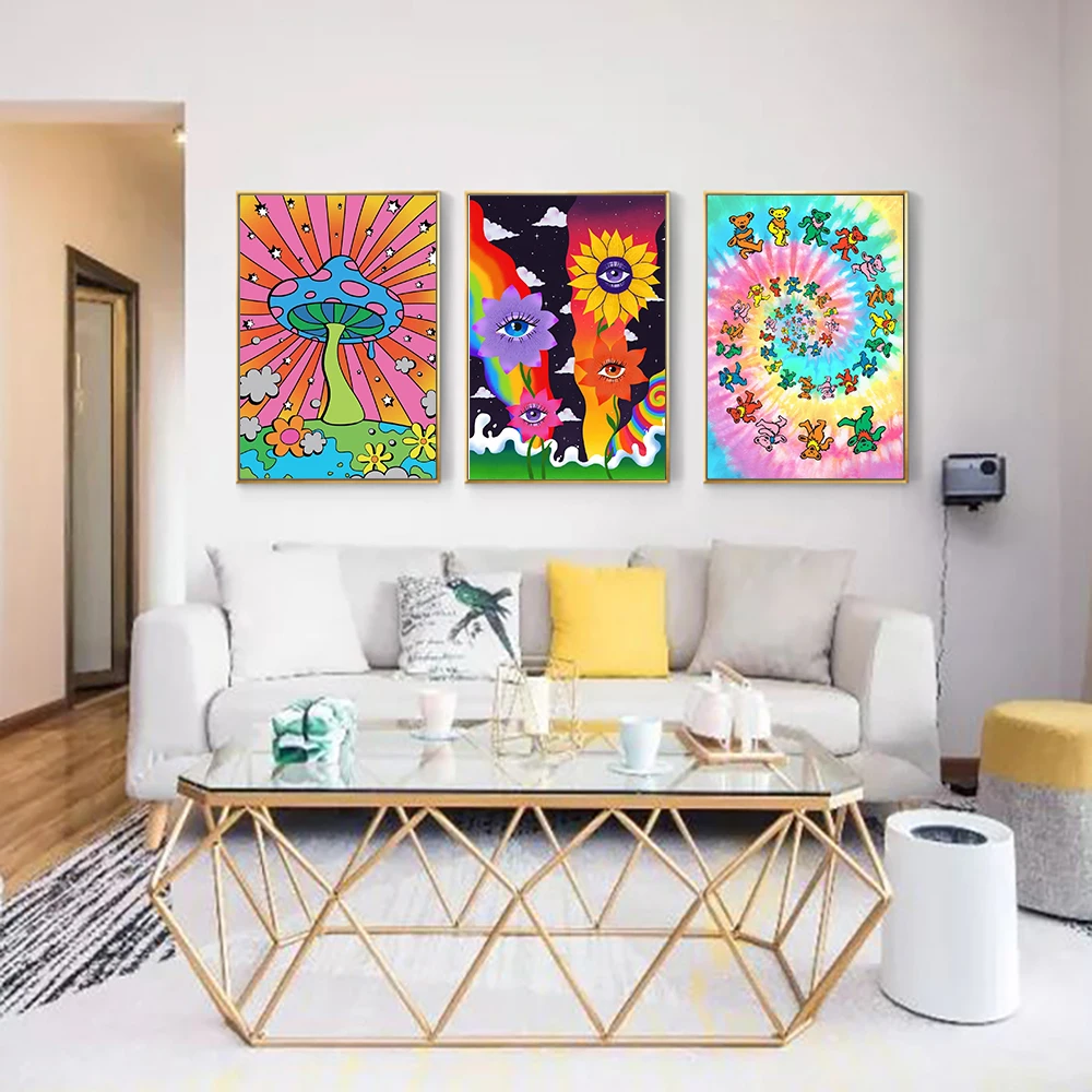 70s богемная красочная психоделическая стена искусство Искусство ре...