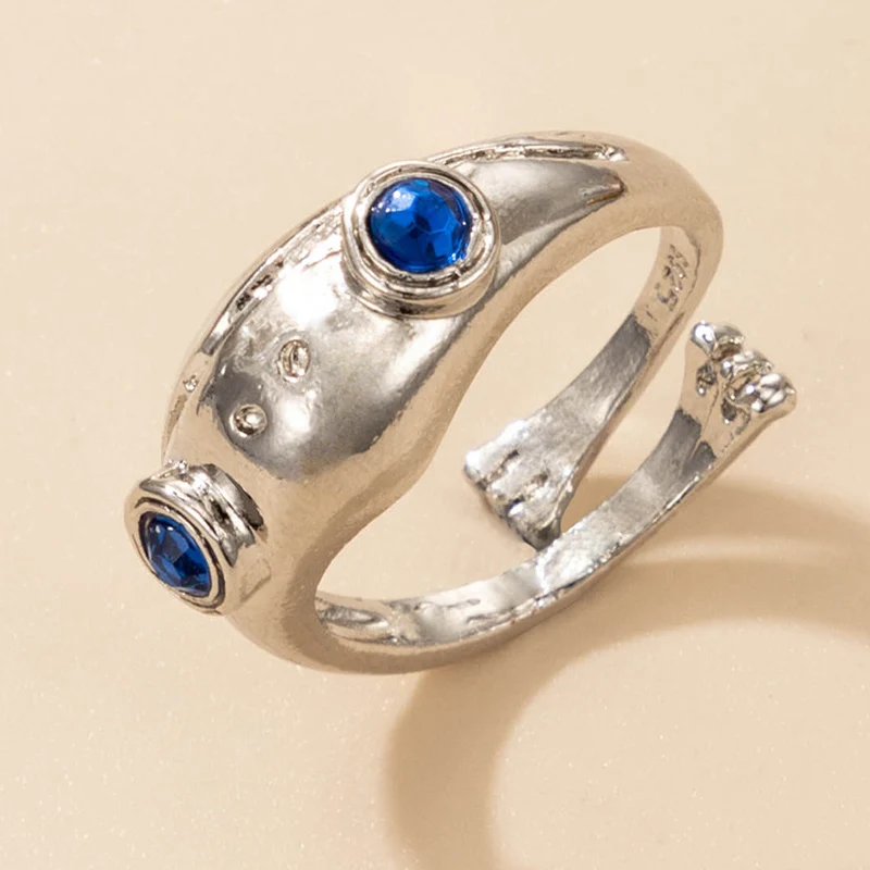 Кольцо с лягушкой, регулируемое, серебристого цвета