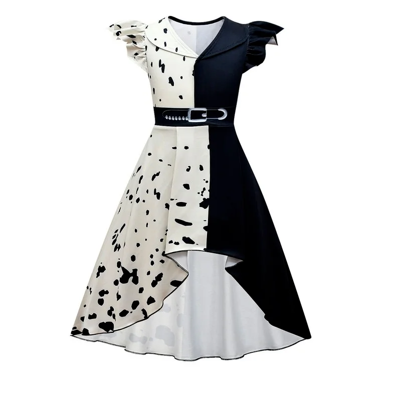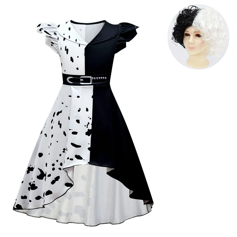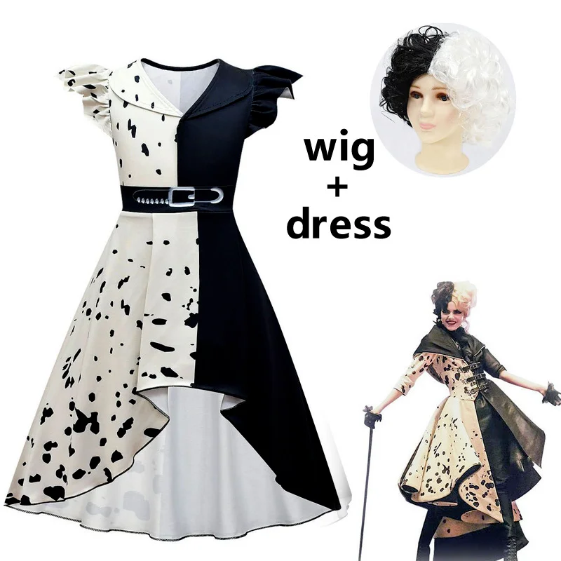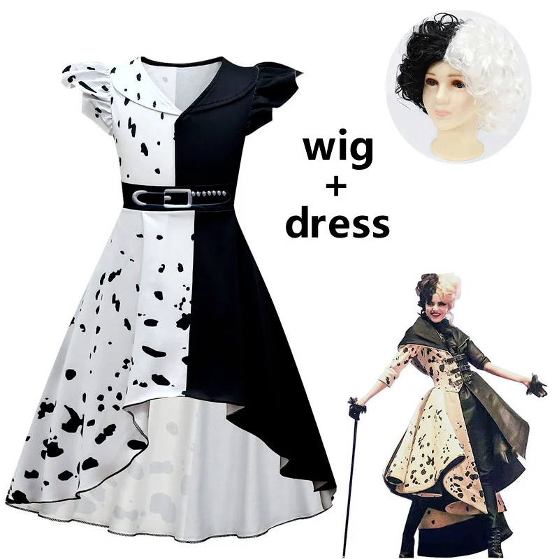 Косплей-костюм для девочек Cruella, наряды на Хэллоуин, черно-белое...