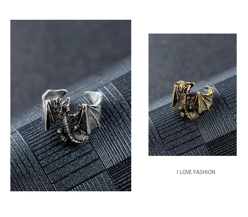 Готические серебристые кольца с драконом, винтажное открывающееся к...