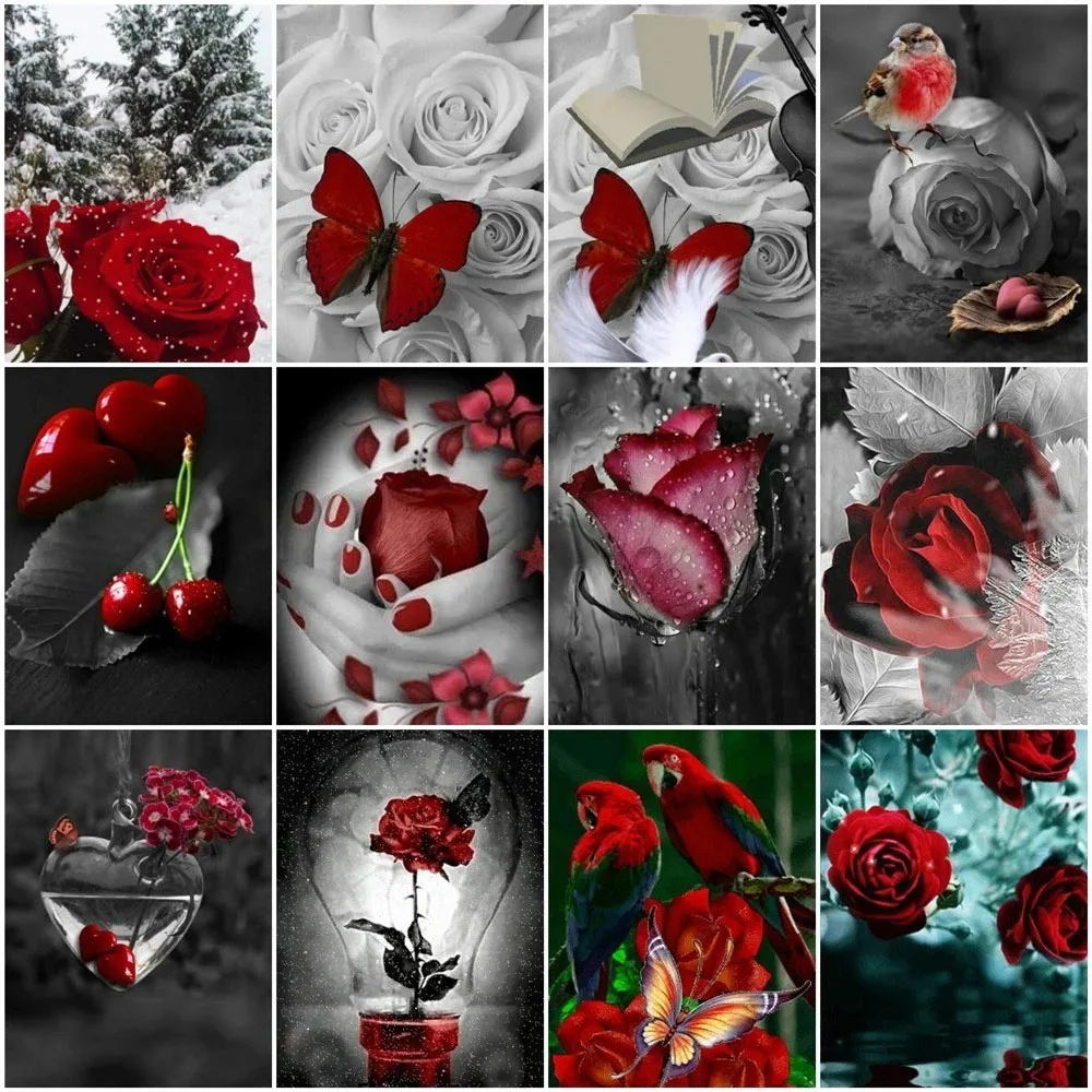 Алмазная 5D картина сделай сам с розами, полноразмерная вышивка крестиком, мозаика с цветами, бабочками, подарок для домашнего декора