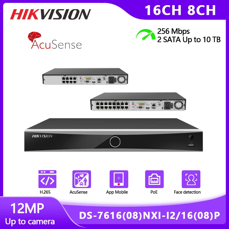 Hikvision POE AcuSense 4K NVR 16CH DS-7616NXI-I216 PS 8CH DS-7608NXI-I28 PS работает с камерой видеонаблюдения 12MP поддержка распознавания лица