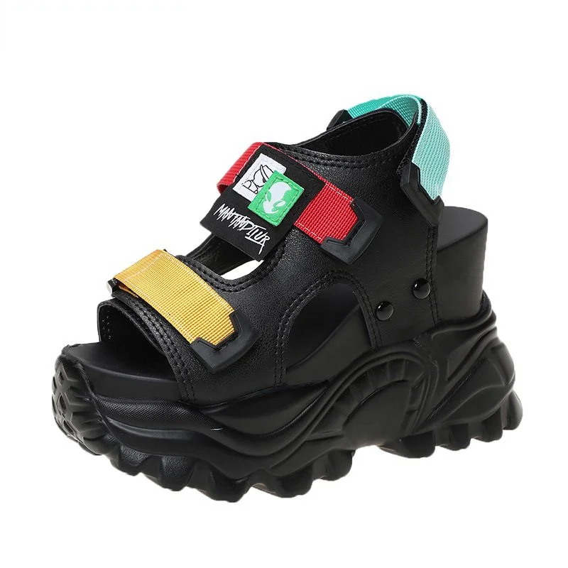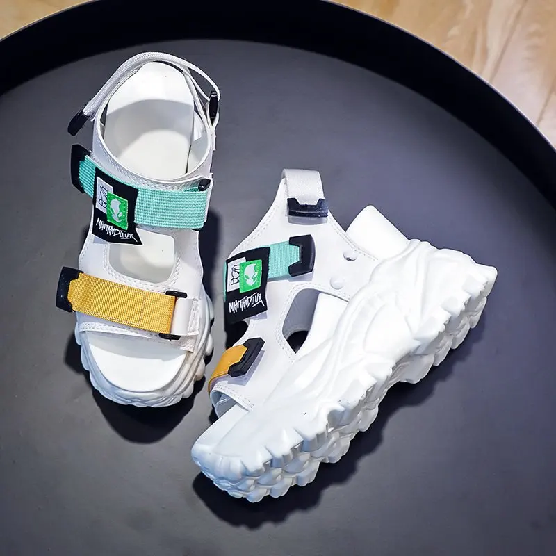 2021 Модные кеды на высокой платформе сандалии с пряжкой в стиле па...