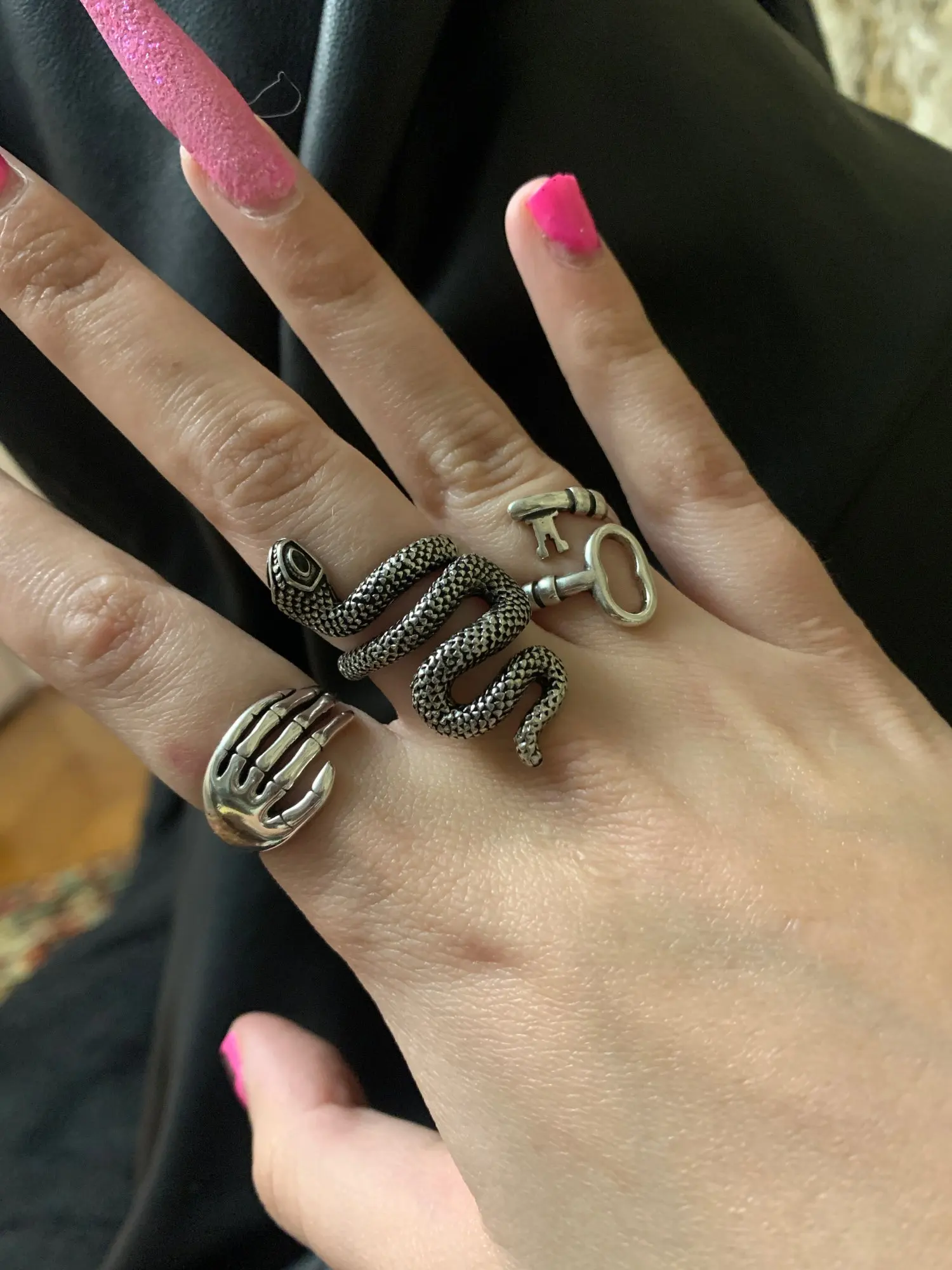Регулируемое кольцо, серебряное кольцо, Трендовое винтажное креативное кольцо-скелет в стиле панк-рок, вечернее ювелирное изделие для женщин, подарочное кольцо на палец