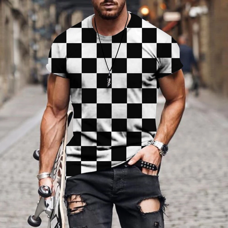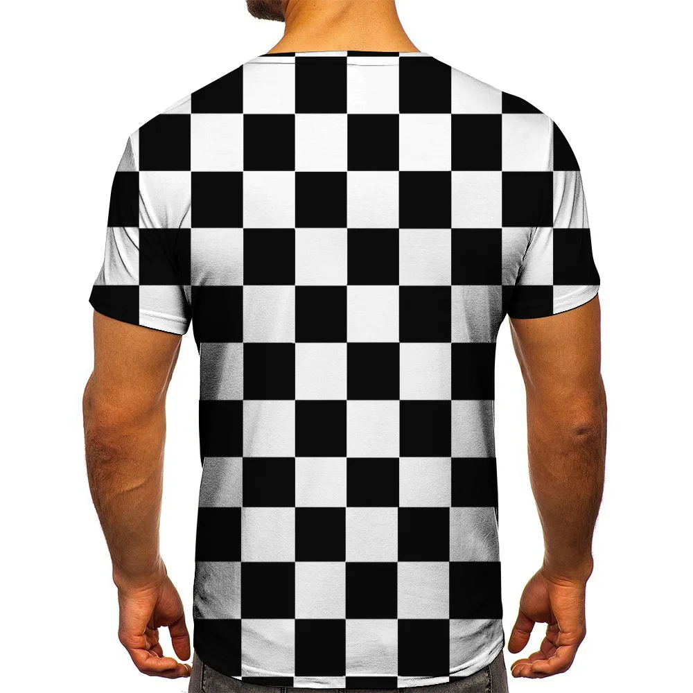 Черно-белая Повседневная трендовая футболка с 3D-принтом в клетку, ...