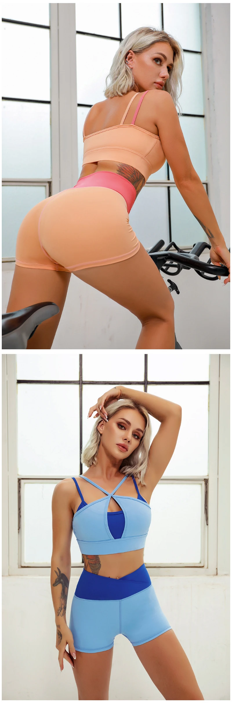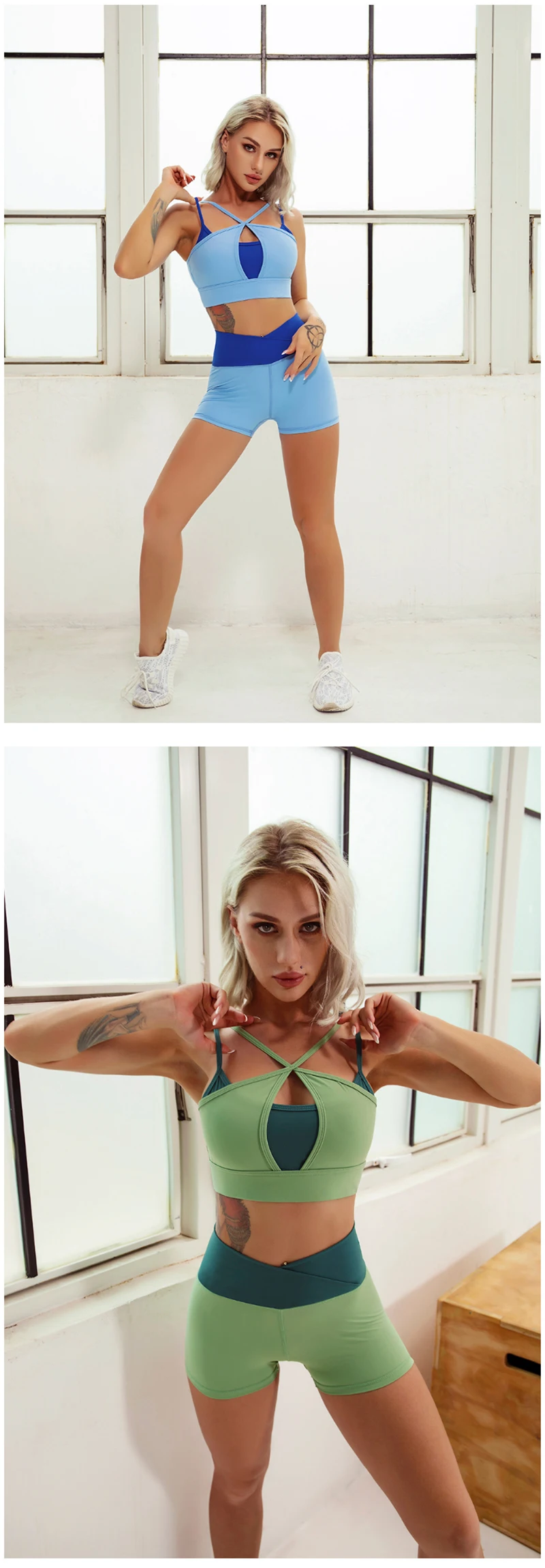 Комплект Спортивный женский из двух предметов, бесшовный укороченный топ с бюстгальтером и шорты, одежда для тренировок, одежда для фитнеса, костюм для бега и спортзала, комплекты для йоги