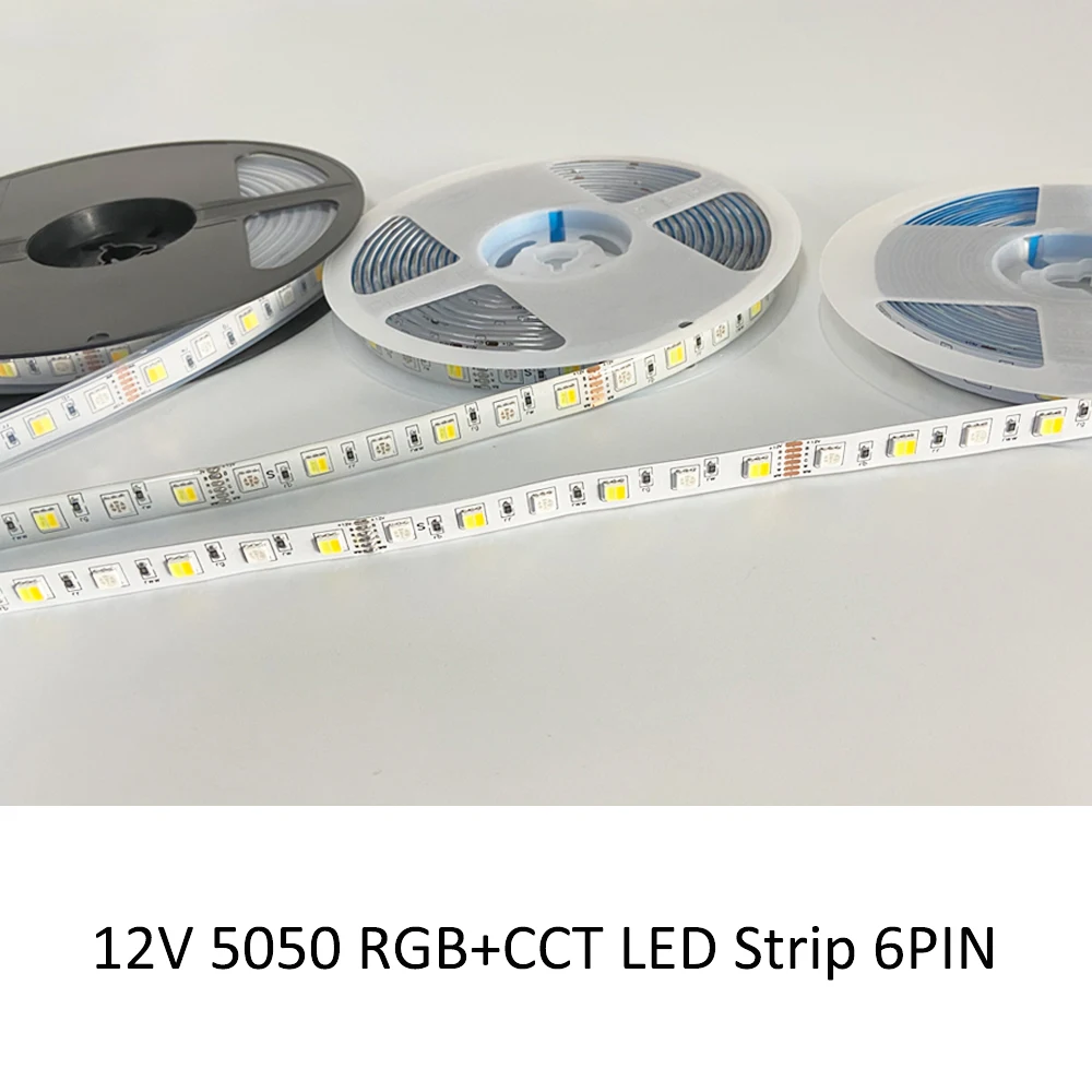 Светодиодная лента с Wi-Fi, 5 м, 12 В, 5050 SMD, RGBCW, RGB + CCT, гибкая, с регулируемой яркостью, беспроводной пульт дистанционного управления, голосовое управление Google Assistant