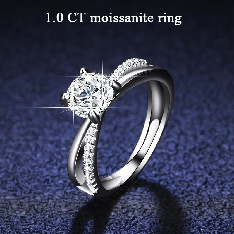1.0 карат муассанит бриллиантовое кольцо из стерлингового серебра о...